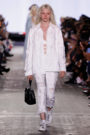The models zoomed through Dior Homme’s suspended roller-coaster set so swiftly that one would think they were on skateboards. Just when one thought athletic influences were running out of breath, Dior Homme gave them a second wind: from the stripes running over the sleeves of two-button jackets to the tracksuit chevrons painted with a roller onto suit and coat sleeves.