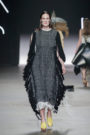 Freedom was written all over the large and elegant silhouettes as the contrary was visible in tight enlaced looks cinched by black ribbons, leather belts and even corsets. Mostly black and white hues as well as mono prints symbolized Cohen’s idea of light and dark. A few touches of dusty pink were pleasant. Cohen’s signature pleats were given a twist, turning into fan structures.