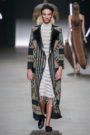 Aaand fashion week is officially started! Illustrator, artist and fashion designer Karim Adduchi (1988, Imzouren, Marokko) opened a fashion filled week with his ‘She lives behind the courtyard door’- collection. Ignoring trends and other fashion codes Adduchi took us to a place where tradition and mystic determine everything. His designs represented hidden beauty and strength, as colors and patterns also referred to Adduchi’s Moroccan roots, his dreams and barriers. Lots of focus on detail, which is much appreciated after years and years of minimalism. Carpets, both fresh from the loom and antique, are draped and sculpted, combined and mixed, their heavy wool textures contrasted by the occasional shimmer of elaborate modern details. All pieces are handmade and unique; the carpets hand-loomed in Morocco, the seams hand-stitched by Adduchi. Drawing inspiration from his own heritage, reconstructing it and using this history to tell us about courtyards and the women living in them. Adduchi invited us to create our own story, handing us the material to dream and to follow him behind the courtyard door. Adduchi is a storyteller, and fashion is his way of communicating without having to speak. Oh well, enough words, just take a look at the image gallery above and you get an idea.