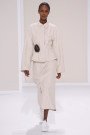 While maximalism was upcoming in so many fashion collections of the last few weeks, there was no sign of the more is more style rule at Hermes. It was as minimal as so many fashion houses have been showing over the last few years. Including the model’s barely there hair & make-up. Not necessarily a bad thing, of course. Without any distracting chandelier earring or neon colored troll hair our eyes were solely on the clothes. A selection of practical day wear in a vibrant color palette. Not mind blowing attire, but very wearable strong pieces. Like a white pleated midi skirt with matching long sleeve top with graphic lines. Or a red midi co-ord paired with sneakers in the same shade. Not to mention those white short combined with a sleeveless cream colored trench. Simple yet strong. Some outfits perhaps were a bit too crisp and clean and a little too much of what we’ve been seeing before the last couple of seasons. Not a collection to make headliners, but luckily Hermes’ Apple watch collection – to be released this week, yet not one pair at sight in the show – is already doing that. So not to worry. After all accessories are bringing in the big bucks at Hermes.