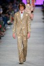 Gucci’s new designer Alessandro Michele presented his first official menswear-collection. This collection amplified his idiosyncratic, “genderless” approach as he lavished his thrift shop Seventies collection with florid embroideries of exotic birds, butterflies and flowers.