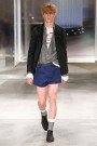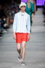 The designer choose looser silhouettes, teaming his slouchy double-breasted jackets and boxy camp shirts with skater shorts.