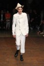 What happens when you take the living soul out of a designer-collection is that the format becomes visible in every detail. And that’s what’s going on at the house of John Galliano right now. It’s courageous of Bill Gayten to take the bow after the show, but it all looked forced. Gone are the theatrics, but the artsy types in military jackets, David Hockney clones and rakish rockers stayed since the Swinging Sixties and Pop Art were the sources of inspiration.