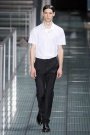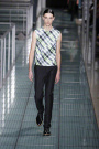 Raf Simons’ own ss2012 collection was well balanced. A tailored black suit was the canvas on which the Belgian designer build his minimalistic vision, with roomy coats (and some tunics) in mismatched checks or pastel-colors, sleeveless leather T-shirts, sleeveless knits with a small flower-print or shirts in contrasting black & white.
