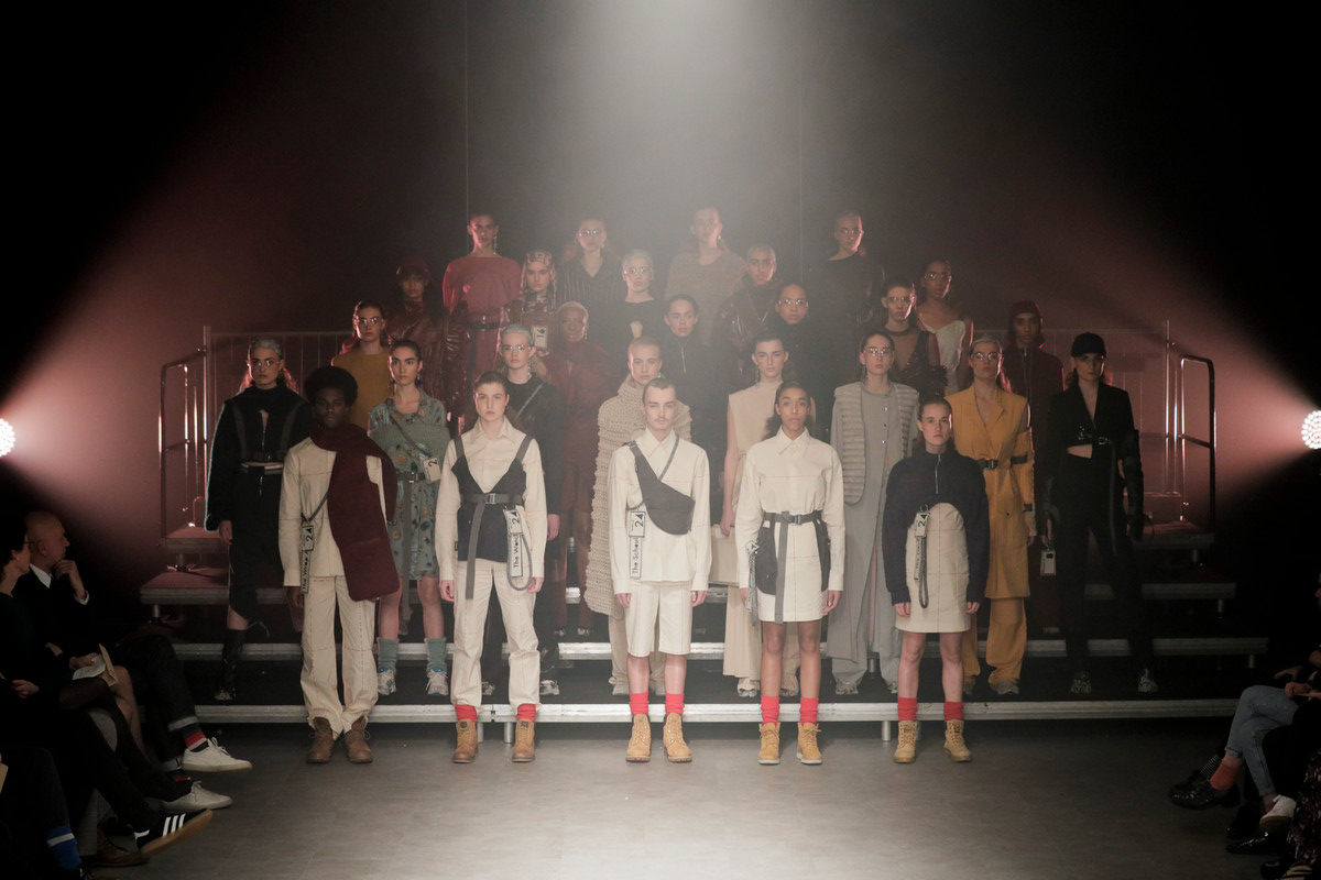 The collection had a great sculptural quality to it, applied to everything he touched including the boots and sneakers with platform molded soles, which added to the brutality of the ensemble. Owens also He reworked shapes from past seasons.