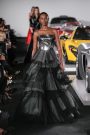 It was within the context of luxury cars (Porsches, Bugattis, Jaguars, Ferraris) that Ralph Lauren’s claim of connection between clothes and cars resonated. Unlike some of the cars, revolutionary when created in terms of design and performance, the clothes didn’t attempt reinvention. Rather they oozed the timeless chic in which Lauren believes deeply and which, as the surroundings indicated, has worked well. The show opened with the tony men’s wear fabrics he loves — mixed tweeds, checks and plaids. The extensive passage featured a women’s range of dressed-up (bustier over pants) and dressed-down (relaxed jacket, pants). Men’s looks included a re-fabricated motorcycle jacket over shirt and tie and a double-breasted coat belted over lumberjack plaid sweater.