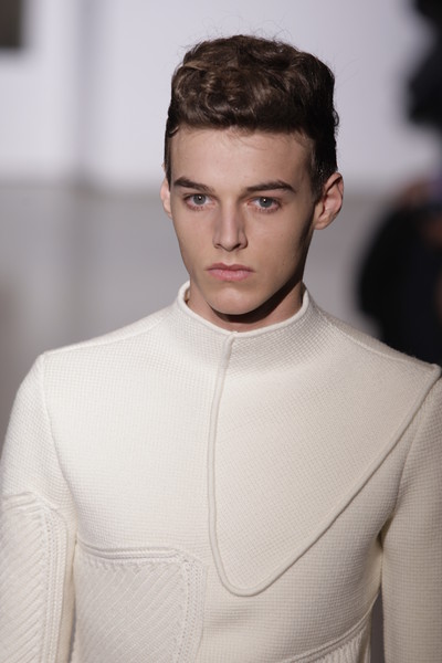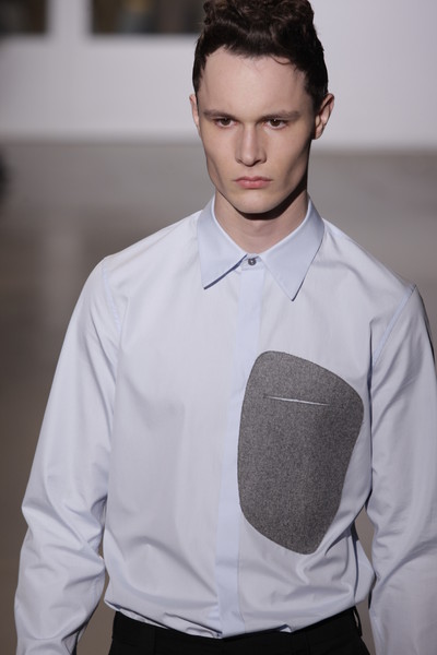 Raf Simons still tries to push the boundaries of traditional menswear at Jil Sander without being silly or looking forced. By using the best fabrics and skills of experienced tailors he manages to present a collection that’s far ahead of others and also very daring. I mean: who would put mobile pockets at jackets or lift the waistline? This was a tailored wardrobe injected with energy, with a concrete focus on shape and a forthlooking approach, using texture and construction to define a confident masculinity.