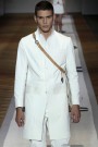 Halfway the show some sand-colored items were introduced; cargo pants, jackets and a long, sleeves, flared coat. They looked stunning with the light blue colored denim items and were roughened up by lots of belts.