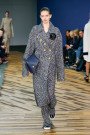 Phoebe Philo presented confident, distinctive women with a taste for classic luxury in her runway-show for Celine. That luxury looked advanced and individualized with a quirky cut, proportion, color or print. There was a sense of cosmopolitan practicality and versatility. Like the girl in the brown trench, crinkled as if it had been folded in a suitcase and worn with a leather hood tied around the neck, pants and galoshlike pointy leather boots. The woman in the black-and-blond fur coat over a casual navy V-neck sweater, aqua blue T-shirt and pants that zipped down over white heels, carrying a large, plain black canvas tote, like a reusable shopping bag, could have been trying to look like she wasn’t trying to look chic at the grocery store. A model — in a modernist Josephine dress, draped and gathered at the hem over lace tights and gold shoes — might have been headed to date night. Those carrying big fluffy blankets with their tuxedo tailoring and exotic prints, suggested travel, as did the model in a lightweight white trench done in a map print. We’ll definitely find parts of this collection back in mainstreet collections.