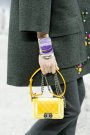 Everyone seated at Chanel had a front row seat to witness every single one of the 92 outfits passing by at the Grand Palais Tuesday morning. No iceberg, Supermarket or airport to distract us from the clothing this time around. Back to err..basic, although every guest still had a gold painted chair awaiting them. At least Karl made sure our eyes were all on those bright pink opening looks. A selection of Chanel classic; tweed skirt suits decorated by multiple pearl necklaces. Update though, by touches of denim, riding boots and leather-brimmed boaters. After the pink an array of gray and off white looks appeared, followed by touches of camel, metallic, black and white. Heavy winter wool, leather and a type of multi colored fake fur gave the collection it’s rich touch, as did the gloves, the bags (some attached to the models’ belts – as seen at Prada) and the delicate jewelry. There were coats we could live in and off shoulder party dresses you’d never want to take off. Yet we doubt whether those silly hats will ever really become a thing..