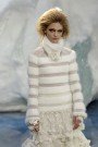 His fake fur boots, we must say. Cause the whole iceberg-thing might not have been so politically correct, Karl did use fake fur for this collection. He commented: ‘You cannot fake chic but you can be chic in fake fur’ and explained that fake fur, nowadays, looks very realistic. Because you can hardly see the difference between real and fake fur Karl decided this collection was to be a ‘triumph for fake fur’. The fur came in brown, gray, white and black and was seen on the skirts, boots, pants, cuffs, coats, bags and collars.