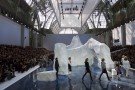 During the show the iceberg was slowly melting, so all models ended up walking in big puddles of water. What a pity for the luxurious clothes! Karl’s long pants, floor-sweeping coats & dresses and his fur boots all got wet.