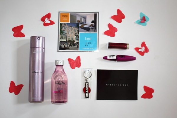 At the Claes Iversen fashion show we saw a lot of butterflies. They were there on the clothes, the models hair and they even ended up in our goodiebag. Other products in that bag were from L’oréal, the sponsor of the show and Martini, who served some nice cocktails during the night.