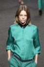 In the show notes designer Ennio Capasa of CnC Costume Nationel explained his collection was about ‘an imaginative woman in a virtual metropolis’ who is ‘post-punk, post-chic but above all technological’. Like the Girl with the Dragon Tattoo? It’s clear that this type of tough girl is inspiring more designers, if not the colthes it’s the beauty of Rooney Mara (her dark, short hair and black make-up). Fabrics were extra shiny, like a slick patent leather. Capasa used it for robust outerwear in boxy shapes with diagonal zippers. The result was futuristic and a bit aggressive.
