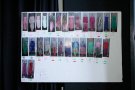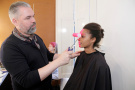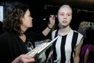 Take a look backstage at Collection Arnhem. Colorful water-paint underpinned the collection which was the students vision on the nearby future. Rollers with pink, green and blue paint were rolled over the faces; eyebrows, lashes and nails got matching colors too.