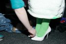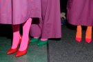 Today Collectie Arnhem presented it’s new collection designed by a group of ArtEZ students. Their designs came with bold stripes, enormous ruffles, sequins and neon colors. Male and female students walked the catwalk to the loud beat that was played in high heels and bright stocking. They wore pants with enormous legs, wide tops and long stiff dresses. Their faces were neon colored and they wore bright caps. It felt a bit like a circus but we certainly got a positive vibe from it!