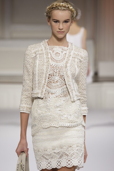 Although lace is usually only seen in lingerie or underwear, we were now confronted with lace in all kinds of daywear in many shows. The largest fashionbrands like Chanel, Dior, D&G, Oscar de la Renta, Cavalli, Valentino and Galliano introduced their clothing for the summer of 2010 with loads of lace.