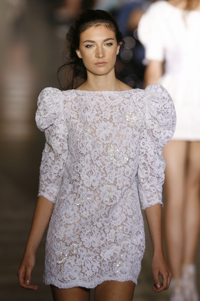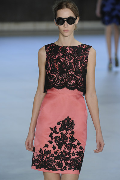 The most outstanding lace designs were a white mini dress with puffy shoulders from Jill Stuart and an elegant lace dress and jacket from Oscar de la Renta.