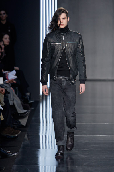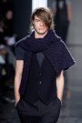 The Costume National-collection reflected the menswear-collection, presented earlier this year in Milan, with lots of knitwear, wool and leather. The overall image was that of a tough girl wearing brown leather suits or skirts mixed with fluffy, fringy knitted jackets, sometimes sleeveless, and sweaters. Dresses were short and also had fringed detailing.