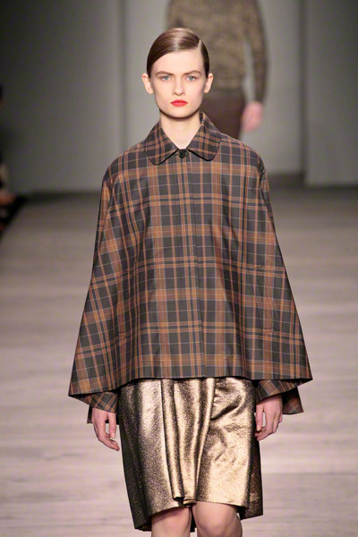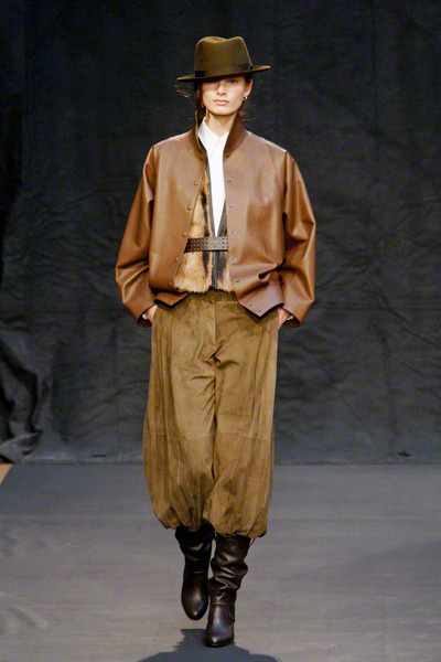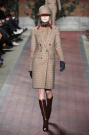 Done is earthy tones like army green, beige, camel and brown the traditionally tailored designs made up for some wearable looks topped off by tweed hats and knee high riding boots.