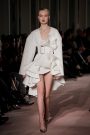 Other looks had an ethereal underwater feel, seen in rippling dresses with a classical allure, and luminous cape gowns in sheer silk organza, their liquid-coated pleats echoing the lines of the kinetic installation.