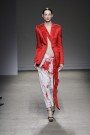 Bloodshed and militairia were the two themes he wove into his haute couturecollection for fall 2010. Thimister took his inspiration from a photograph of Tsarevich Alexei Nikolaevich, Emperor Nicholas II’s murdered 13-year-old son, who was routinely dressed in uniform as a boy. The result was a collection men’s and womenswear mixing romanticism (in red, white, army-green) with a raw-edged minimalism: tank tops and jodhpurs splattered with fake-blood, officer’s jackets, narrow dresses, army cats and jumpsuits. Thimister told style.com he’d used resonances from World War I because “what happened then was the start of modernism: war, sorrow, destruction we’re still dealing with now. And the lack of creativity and spirituality”.