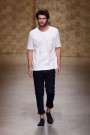 It was the first collection for CP of ex-Galliano menswear designer Wallace Faulds, so expectations were high. Spandau Ballet was on the soundtrack and the place was packed, but in the end the collection was plain and straightforward. Basically it was all about a white tee and indigo jeans, full tops over tapered pants with rolled cuffs. The simplicity and uniformity felt modern, but we missed that extra spark.