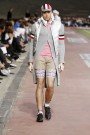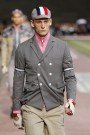 To finish the outfits Thom Browne added some cycling gloves and ties with a straight end. Also, every model wore a cap with the French flag on it.