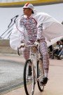 To the sound of Queen’s ‘I want to ride my bicycle’ the first model appeared on – surprise – a cycle. He wore a coat with a special bike print which we were going to see much more throughout the collection. As a matter of fact this print was visible in almost every look. All models wore a cycling legging with the bike print on it. They wore those leggings under their shorts and normal trousers. It didn’t really make sense, yet it gave the looks a sporty touch (as did the lines, hoods, drawstrings, pockets and the bands on the model’s arms and legs).