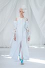 Inspired by the work of Murano glass artist Fulvio Bianconi Font created countless looks with sheer parts and see through details. With some models it even felt like you could see right through them, yet their clothes obviously were too beautiful to miss. Hand embroidered, nature inspired details on tops and dresses gave the collection an extra touch of delicacy. Although the light colored, ruffled and draped ensembles already spoke of next level elegancy.