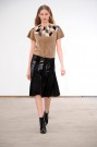 Lam took classic investment pieces with elegant novelty via graphic, second-skin tops. There were recurring elements of the patchworks done in leather and wool jersey, crochet and a thick textured lace.