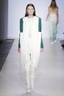 For tonight´s show Anne has been looking back on some of her older designs and has made some slight changes. She, for instance, has started working with color. “My Dutch Fashion Awards nomination coincides with a period in which reflection is very important to me. I found out my work is always about researching and questioning a straight line. All my designs begin with a straight structure. At the same time I try to interrupt and challenge that, which results in clothes with asymmetrical details, layers and pleats. By the movements of the persons wearing my designs unexpected openings and shapes appear. The last couple of months I have been looking back and asking myself questions about the process and the evolvement. For that reason I have been revising pieces from earlier collection. In my latest autumn/winter 2012 collection Hidden Colors I´ve slowly began working with color. This is visible in my vision on the paintings from the golden age. You´ll slowly see color finding it´s way in between all the black. I see it as an enlightenment, which I needed as a counterpart for all the black”, Anne explains.