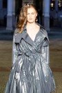 On the catwalk in the courtyard the show continued. There were more asymmetrical pieces, made of ingeniously woven, knitted and perforated materials. Conny too puts focus on shape and volume. Draped satins held together by buttons, ribbons or zippers looked both happy and elegant. A closer look to the used materials, shows the outstanding craftsmanship of this promising designer.