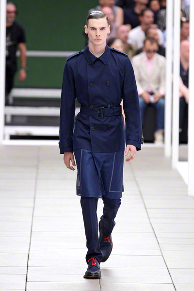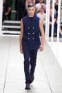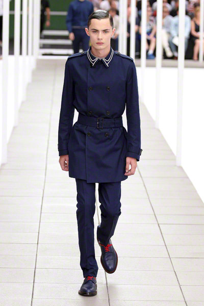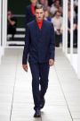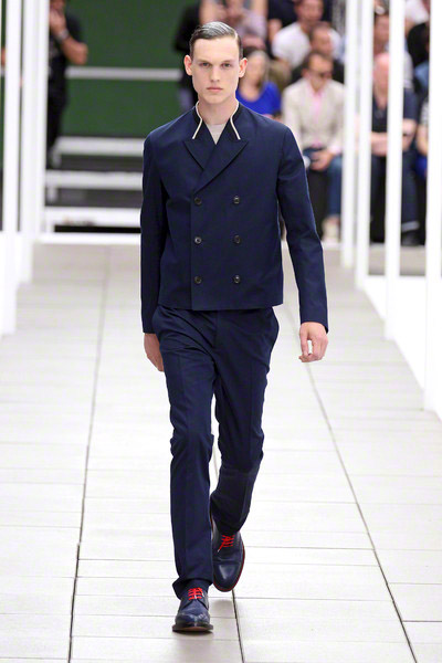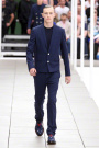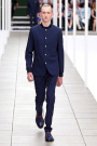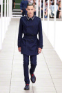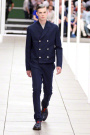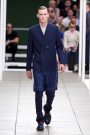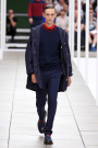 Kris Van Assche’s collection for Dior Homme was entirely in blue, the metal buttons and white/blue striped sweaters aside. Van Assche, in his methodical way, set out to present what he called “a complete wardrobe.”