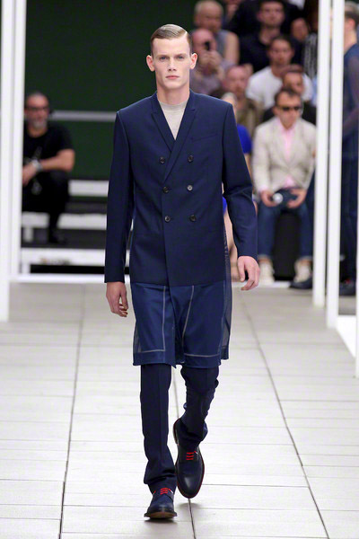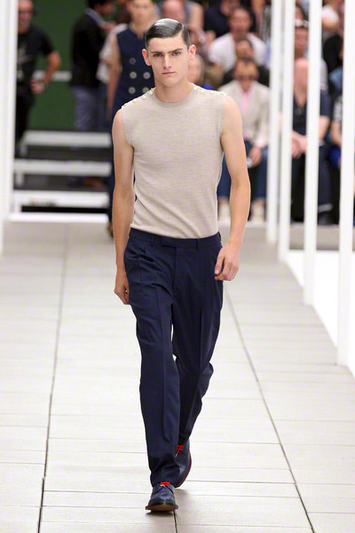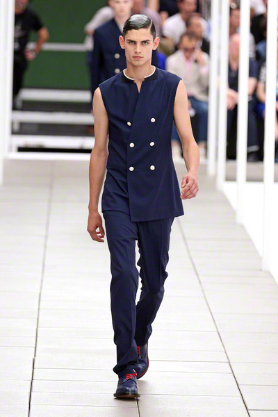 Kris van Assche seems capable of letting his severe, sartorial look go en soften it with lightweight and youthful tailoring. ‘Simplicity is the true luxury’, according to the designer. And so he presented sleeveless trenchcoats, lightweight linen parkas and paper-light jackets. Black, gray and sandywhite were his main colors. Low-slung trousers were tucked into sandals.