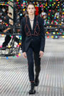 Designer Kris Van Assche decided to take Dior Homme back to its roots in sharp tailoring. In fact, he stretched back to the founder’s defining New Look of 1947 for women — hinged on that wasp-waisted jacket known as the Bar — for his fall collection. He wasn’t shy about the nipped midsection, demarcating the horizontal seam cut into the sides of some jackets with white piping.