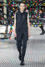 Designer Kris Van Assche also blended in references to punk, Goth and New Wave. Pants had utility pockets, D-rings or side stripes and assumed various guises: from skinny jeans to wide raver styles.