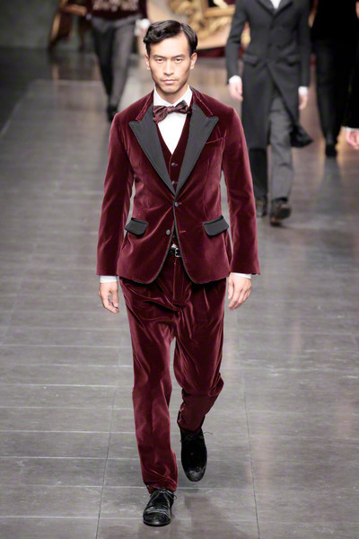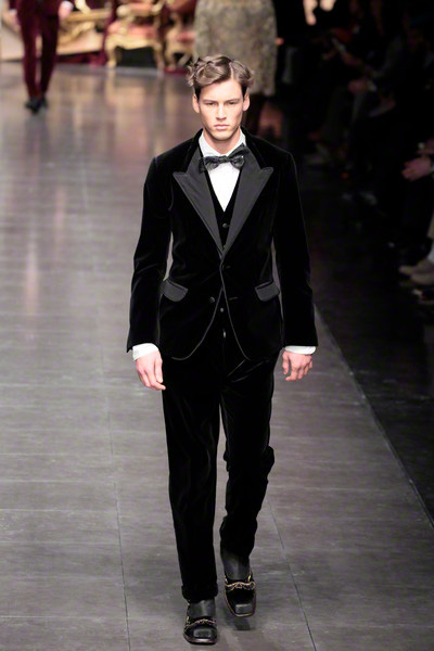 Pinstriped, burgundy, velvet or gold and shiny; there were more than enough evening looks to choose from, topped off by a playful ribbon bow tie and a Sicilian cap every now and then.