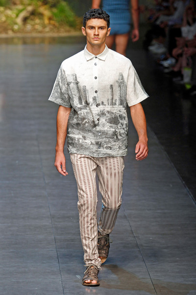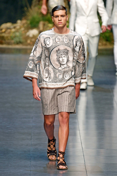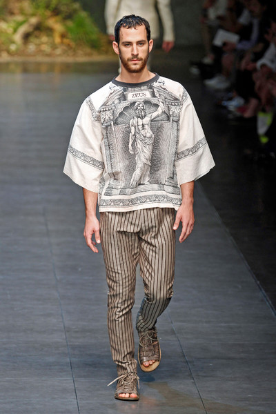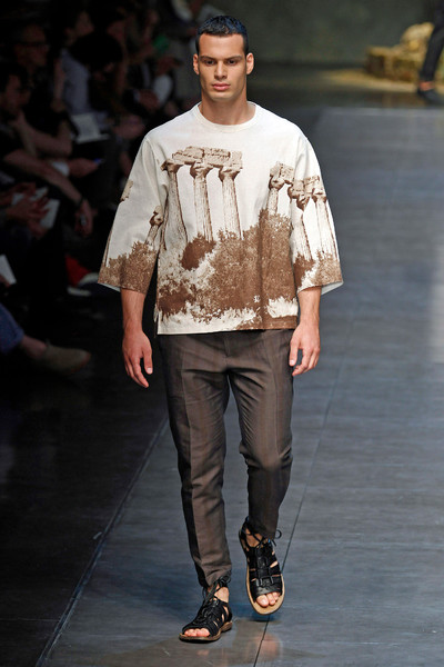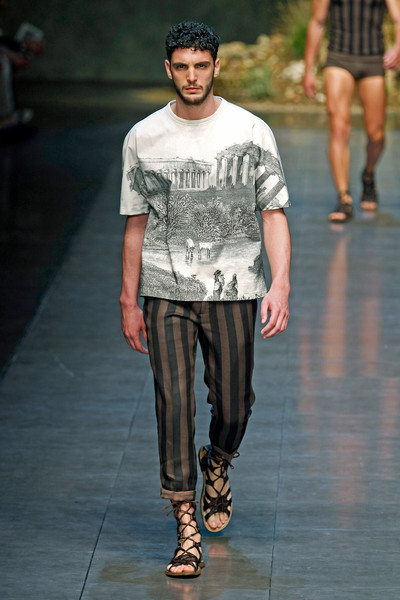 The Dolce & Gabbana Men’s Summer 2014 drew inspiration from Sicilian mythology, whose Greek origins are still retraceable in places such as the Valle dei Templi of Agrigento, at the majestic amphitheatres, like the one at Taormina, and at the Tempio di Apollo of Syracuse.