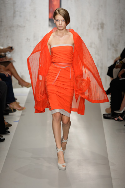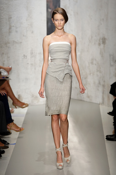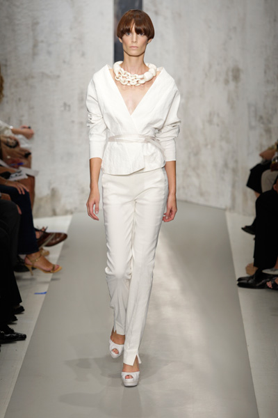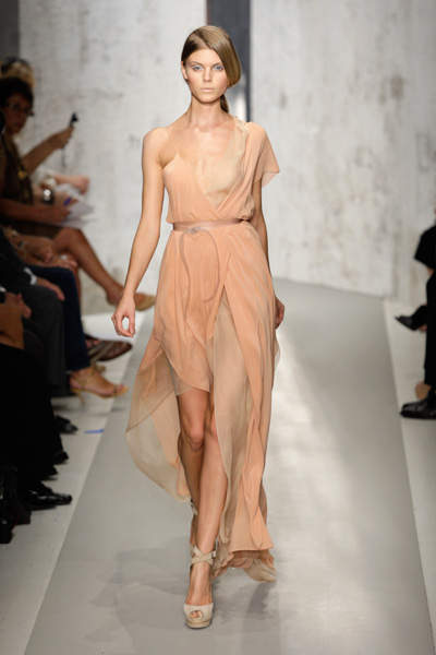 Donna Karan obviously went for a commercial collection this time. All of her design, in shades of turquoise, beige and pink, seemed wearable and will be easy to mix and match into any woman’s wardrobe.