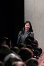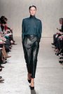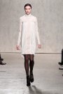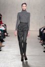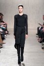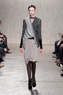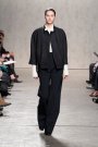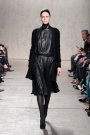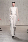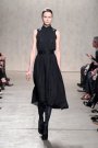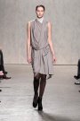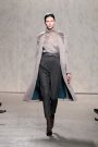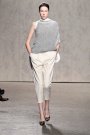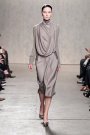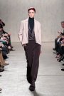From the first model that stepped at the catwalk at Doo.Ri it was obvious the collection was influenced by modern dance. The washed out faces, the slicked-back buns with headbands and the jersey draping. And hey, draping seems to be the strongest point of designer Doo-Ri Chung – so there was much to enjoy. From the twist-top blouses and dresses, high necks, and ink-blue wrap dresses with a twist top. The most interesting idea was to create jackets and coats that looked like two overlapping garments. Colors were like poetry: the tonal combinations of pale pink and shades of brown and eggplant looked fresh.