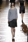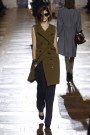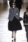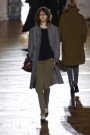 Army green became elegant and feminine when used in tailored skirts, pants and sleeveless trench-like coats. Gray popped up in tailored jackets, big sweaters and dresses. The hourglass silhouette was also present here, thanks to the full skirts.