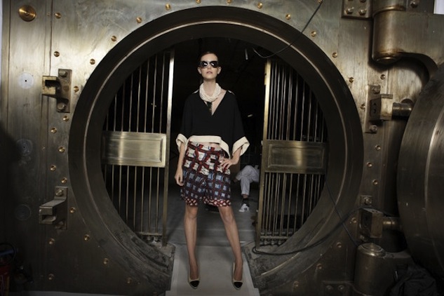 For his spring summer 2011-collection Dries van Noten looked at the mod and ska, two Britisch subcultures. From the mods he took the precise tailoring and classic coats. The ska-influence was visible in the snow washed denim, sleeveless t-shirts, short jackets and the black and white.