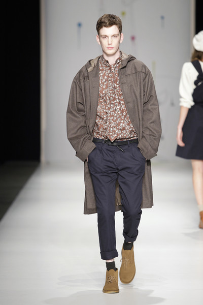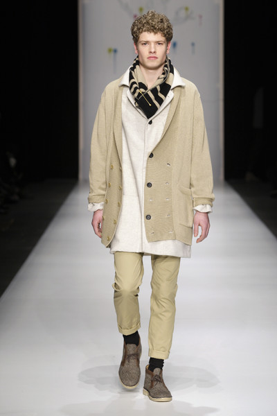 The male models wore long cardigans and their high waisted pants had rolled up legs.