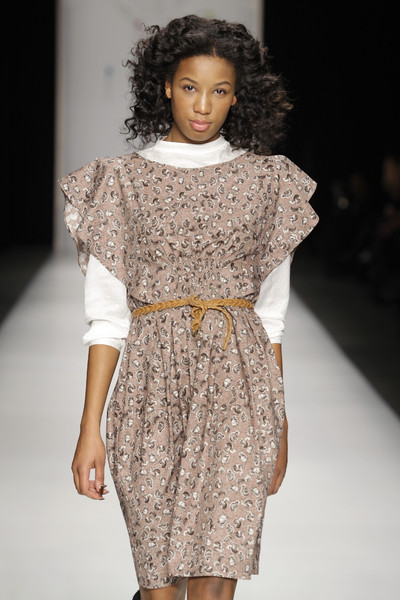 Other eye-catching details were puffy sleeves and accentuated shoulders. The designs had floral prints, stripes and bows. And the girls all walked on boots with wedge heels.