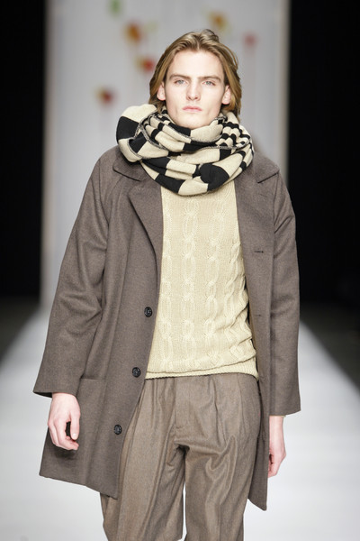 The models he sent out on the runway all looked very sophisticated and mysterious at the same time. Their hair and make-up and the dark shades (black, grey and Burdury red) they wore created that look. The use of luxurious silk, cashmere and wool added to that feeling.