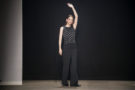 What happens in room 237, doesn’t stay in room 237. Cause we were all invited tonight, by designer Esmay Hijmans (started as intern at Mattijs van Bergen). Her newest collection is based on the movie The Shining and happening in a dark surreal world where night creatures come alive. What happens between dream and reality? ‘The dark night of the soul is a journey into the light, where she becomes a tender dreamer with an artistic freedom.’ This collection was inspired by fashion photographer Guy Bourdin’s seventies inspired dark glamour. Which means a lot of black, black and black. Feminine womenswear and comfy couture with a bedroom/evening dressing feel to it. We saw some white silky jumpsuits, silk trousers, narrow tops with flared sleeves and lingerie inspired finishing touches like embroidered moths, butterflies, flowers, beads and sequins. And who’s daring enough to wear the black bra with off-shoulder flowy sleeves attached to it?