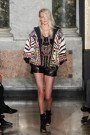 Though like many of the in Milan presented collections Pucci breathed forties, yet it were late sixties/seventies muses Anita Pallenberg, Britt Ekland (and their trendy bangs) that inspired Dundas. Their modern look a likes had that same rocky attitude mixed with a boho swing in the form of animal printed waist belts, high collars, capes and fur coats casually tossed on their shoulders. And if this boho rock collection fails to become a success; the Pucci beauty will. Bangs it is! (what the first lady can do, we can too).