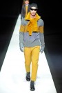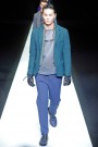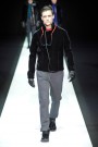 If it’s up to Giorgio Armani we pair our usual winter shades with a touch of camel. Whether bottoms or tops, as long as it’s a fifty (camel)/fifty (black or navy) look it’s Armani proof. Besides duo colored Armani was extremely modern and sporty too. Pants and jackets done in thick neopreen and other modern-looking fabrics gave us a glimpse of the future of fashion. Not all looks the 2013 men will be ready for, but the sporty theme is always a trend in menswear. The short rabbit fur vests looked unflattering and unnecessary, but other than that Armani showed tons of hit pieces for the modern men.