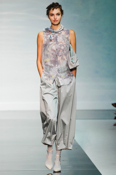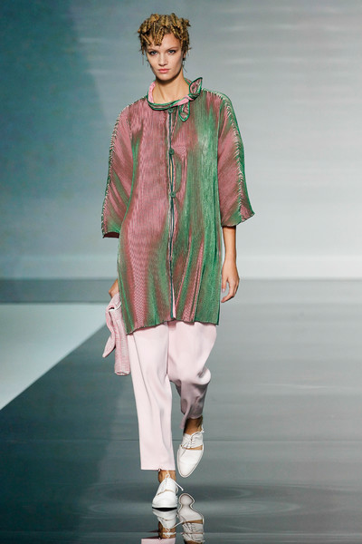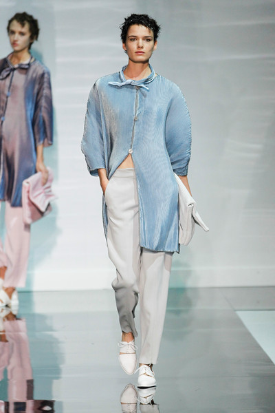 If anything the Emporio Armani show today was relaxed. The silhouette was loose, the fabrics were airy and the nonchalant male models walked in a chill mode (sunglasses on, hands in their pockets).